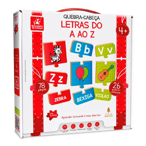 Transforme o aprendizado do alfabeto em uma aventura emocionante com o Quebra-Cabeça Alfabeto Educativo A ao Z da Brincadeira de Criança! Este incrível jogo pedagógico combina diversão e alfabetização, oferecendo às crianças em fase pré-escolar uma forma lúdica e eficaz de aprender as letras.